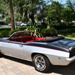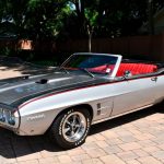 The 1969 Pontiac Firebird Convertible Restomod stands as a mesmerizing amalgamation of classic design and contemporary performance enhancements. Crafted with meticulous attention to detail, this automotive masterpiece pays homage to its heritage while embracing modern innovations. With a gleaming silver exterior that reflects the sunlight in a dance of elegance, and a plush red interior that exudes warmth and sophistication, this car is a true testament to automotive artistry.