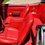 Stepping inside, the allure of the 1969 Pontiac Firebird Convertible Restomod continues to captivate. The interior, adorned in a rich shade of red, strikes a harmonious contrast with the exterior. Meticulously restored, every aspect of the cabin exudes an air of refinement and vintage charm. The blend of classic design elements and modern comforts results in an interior that is both nostalgic and inviting.